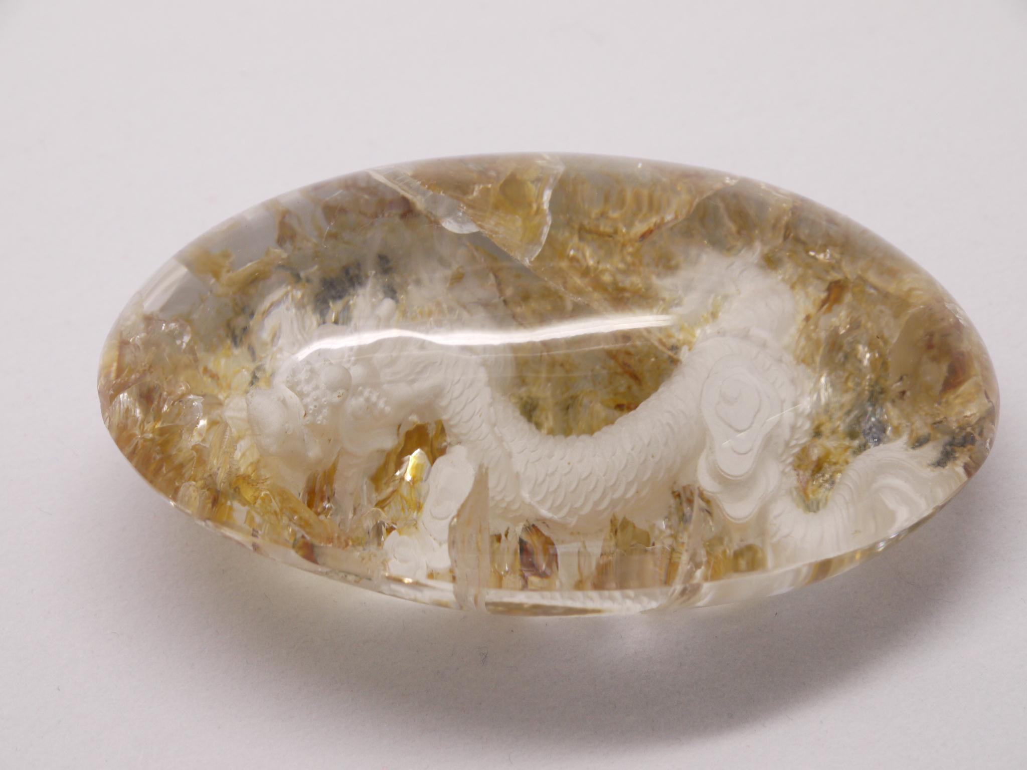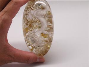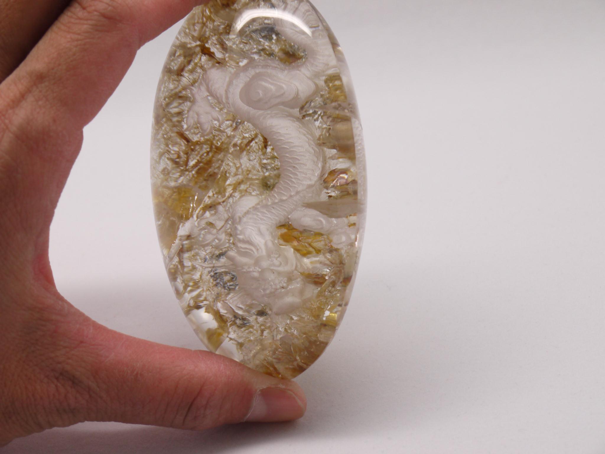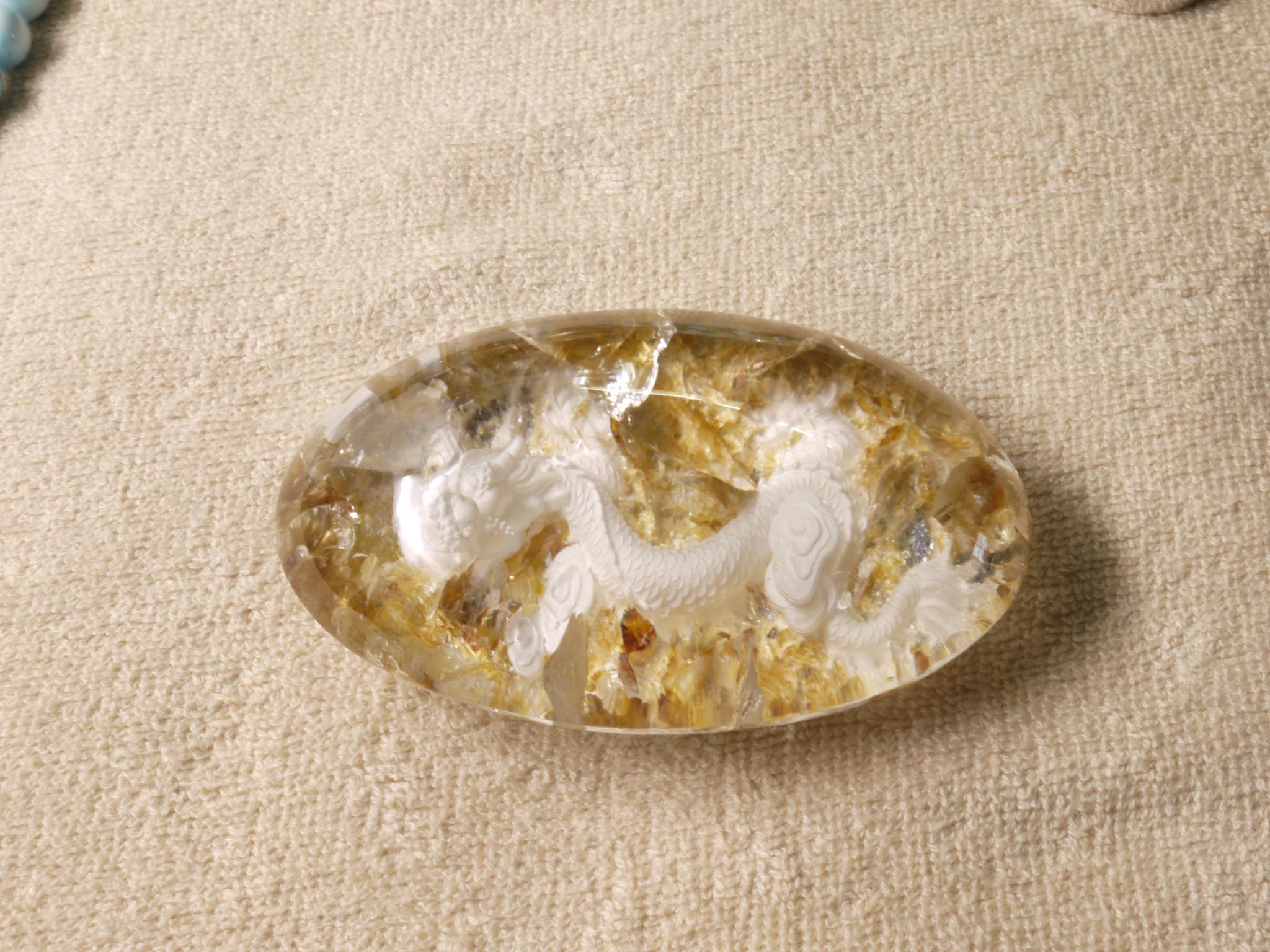 庭園水晶のデザインを生かして、丁寧に手彫りで作成された龍アイテムです。