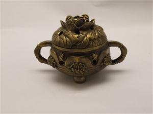 蓮の形のしっかりした香炉です。側面にはカエルのワンポイントが付いています。
