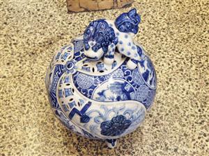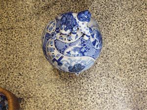 茶道具の一種の香合。大きな珠をイメージした丸い形に蓋の部分には 戯れるようなカワイイ獅子が乗った面白いデザインのです。