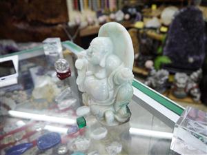 翡翠に彫られた七福神の置物です。 一番目に留まるのが、印象に残るほどにこやかな顔のお顔です。 ここまで笑っている神様はあまり見かけないと思います。