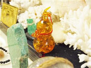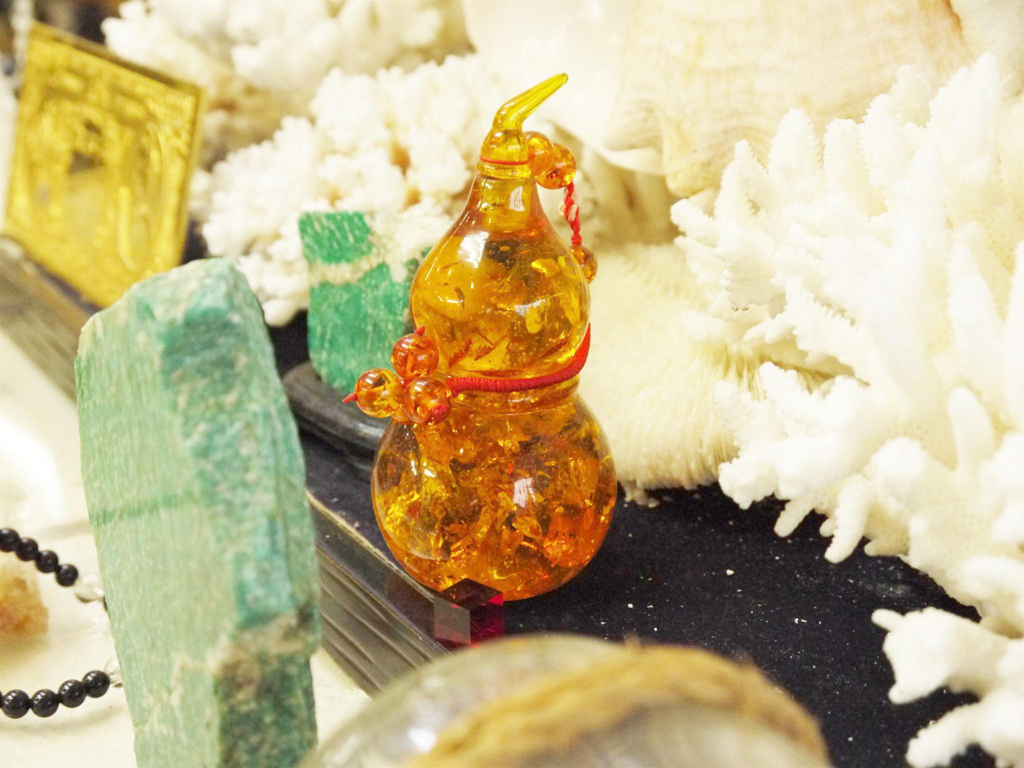 とても美しい琥珀で作られたひょうたんの置物です。 ひょうたんの意味は健康促進、家庭円満、悪い気を吸い込むとの意味がありますので、 風水アイテムとしてもおススメです。