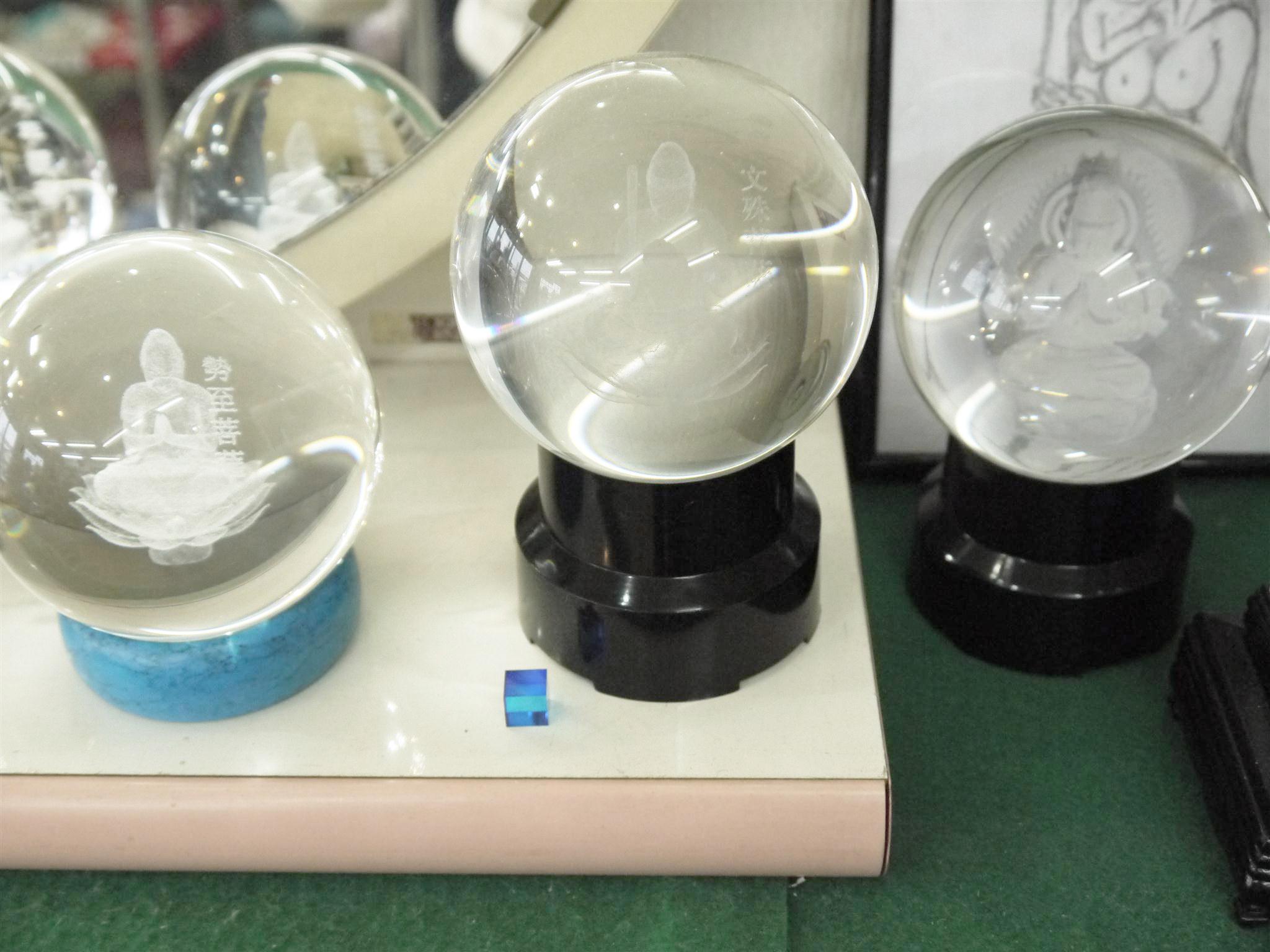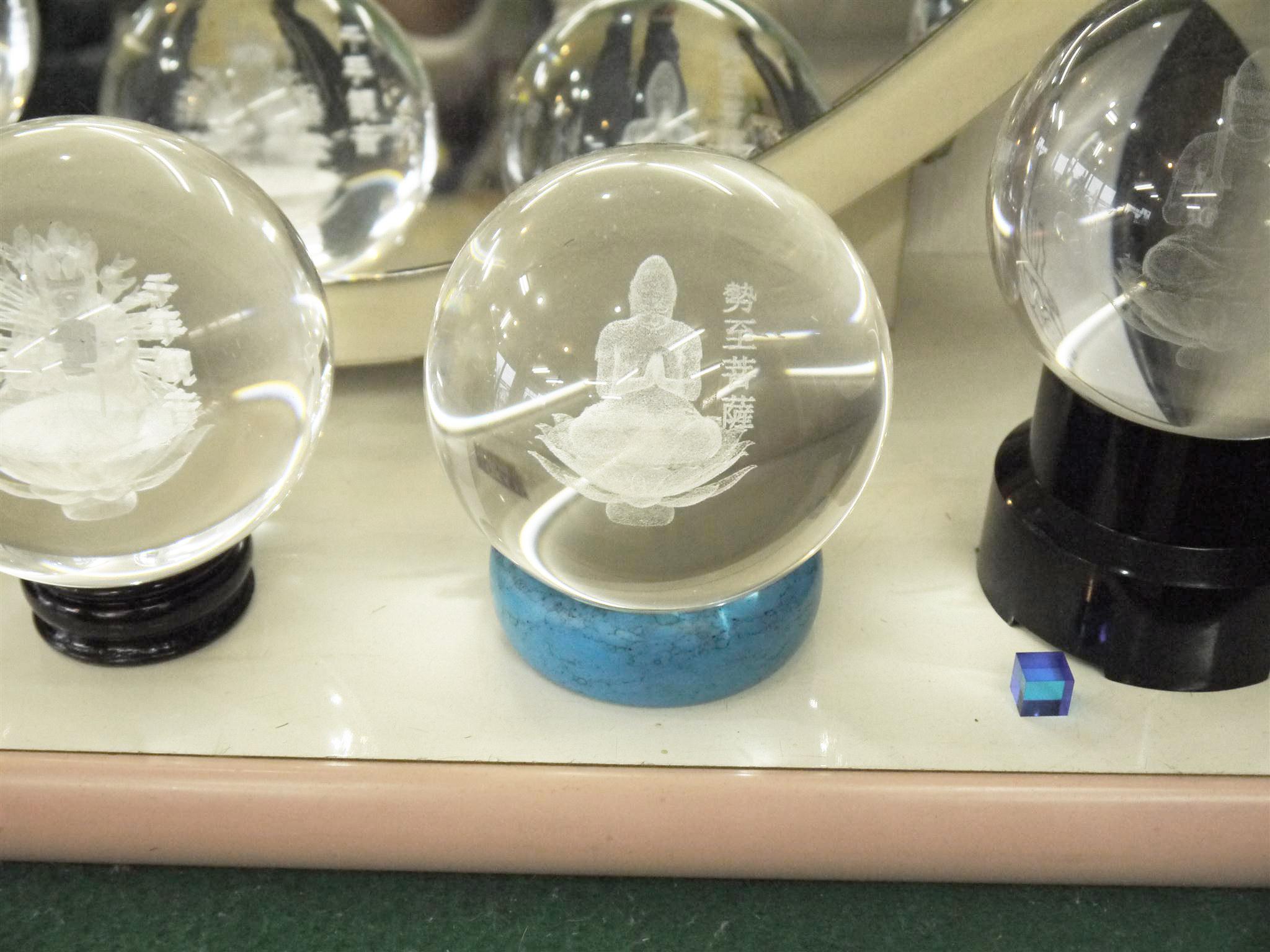 こちらの写真では不動明王、千手観音、勢至菩薩、文殊菩薩の写真ですが、 そのほかにも種類がありますのでお問い合わせください。 台座はLEDでレインボーに光る仕様になっています。