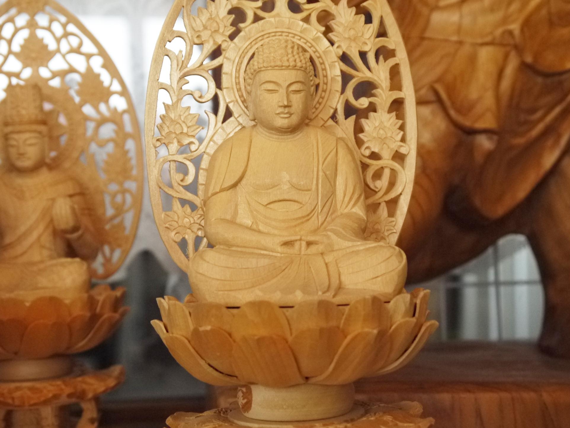 大慈悲の力で深い悟りを与え、精神の救済を実現するといわれる。 中国技術彫刻の名工によって入念精巧に彫られた美しい木像です。