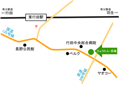 国道125号線沿い 「行田中央総合病院」そば 秩父鉄道東行田駅から徒歩約20分 駐車場有り GoogleMapはこちら