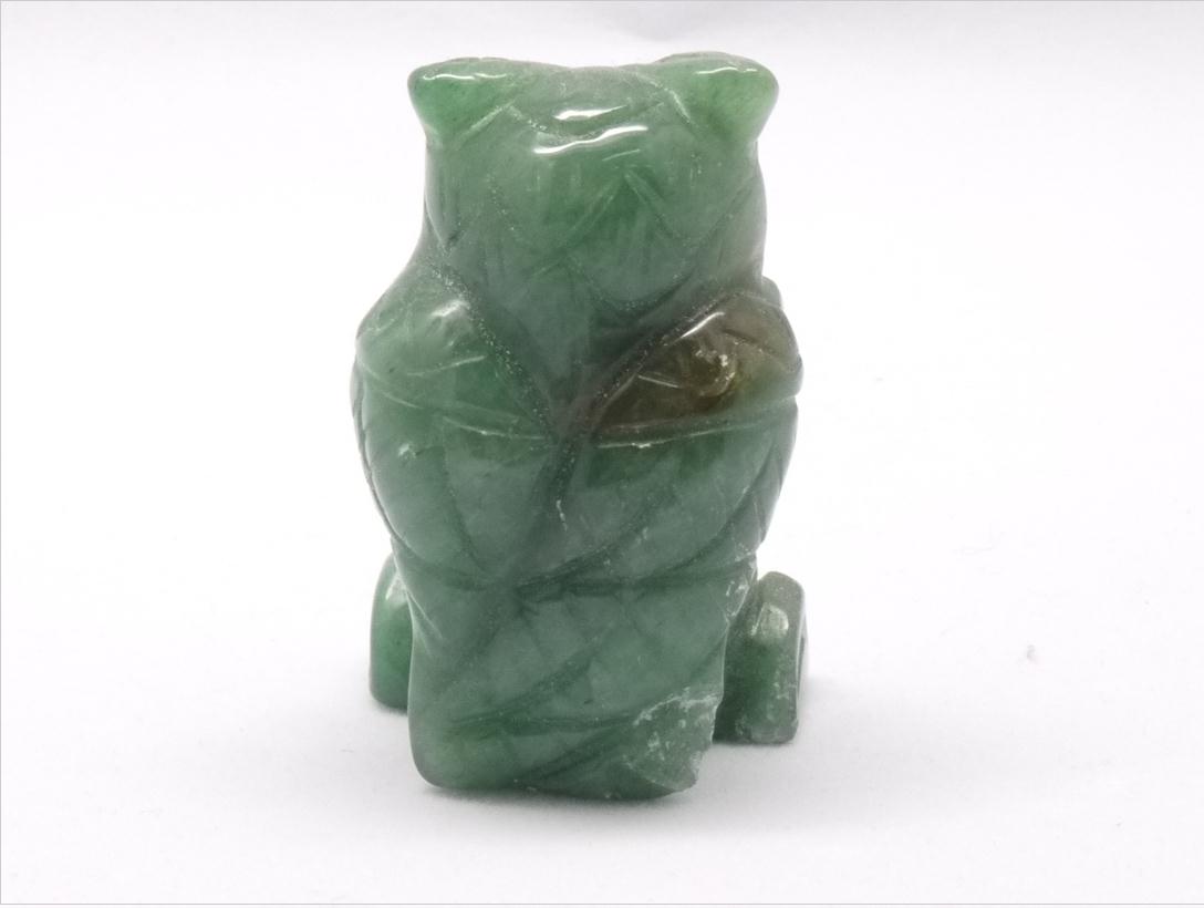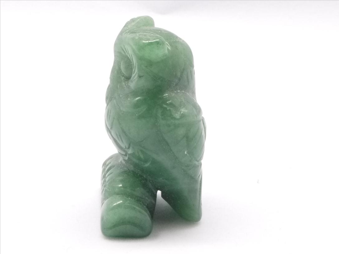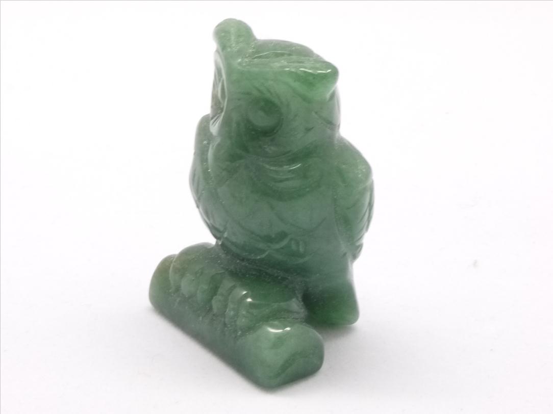 説明: フクロウは「福を呼ぶ」や「学問成就」という意味で縁起の良い動物です。インド翡翠をフクロウの形に彫りこんだ彫刻です。