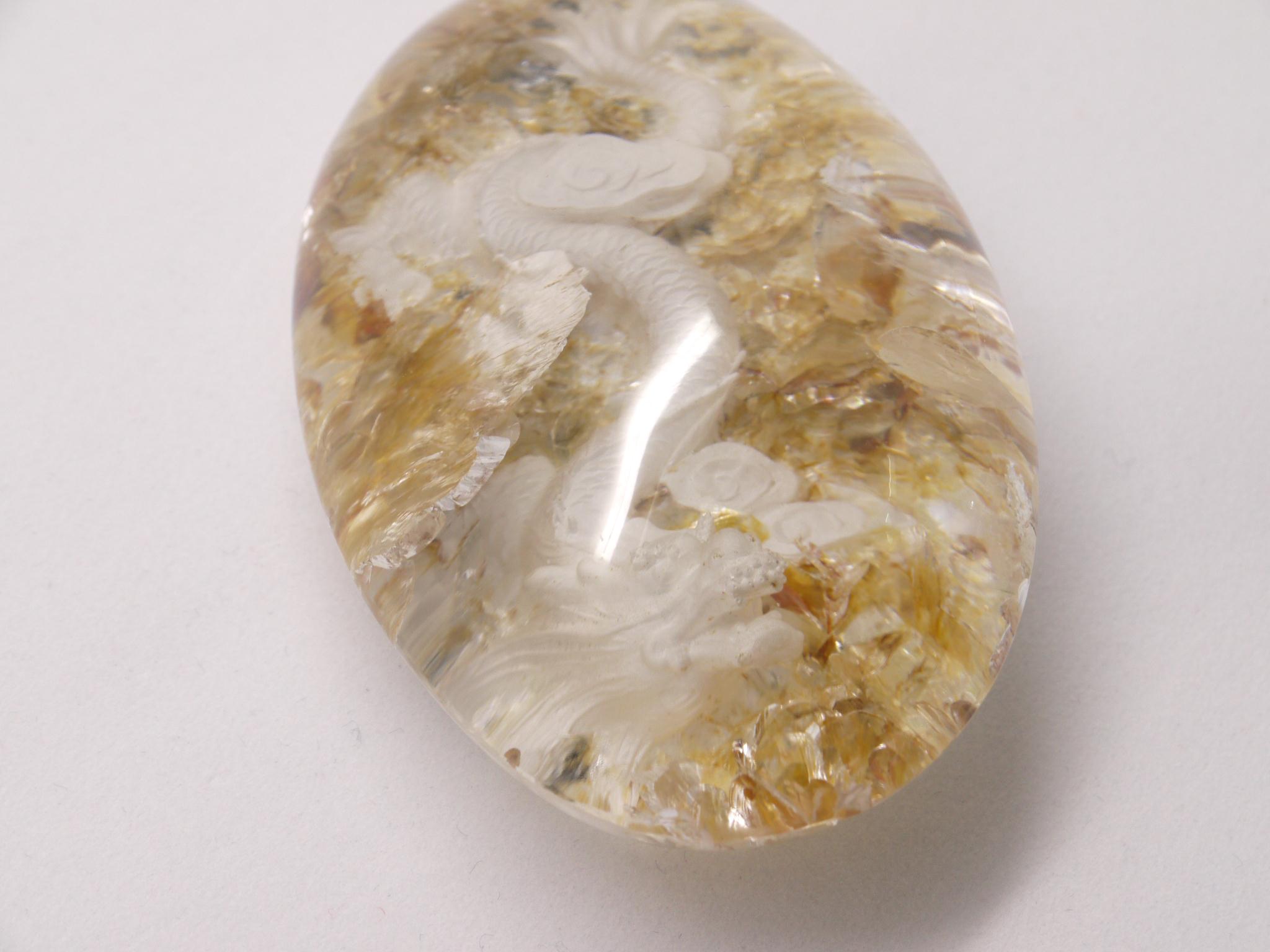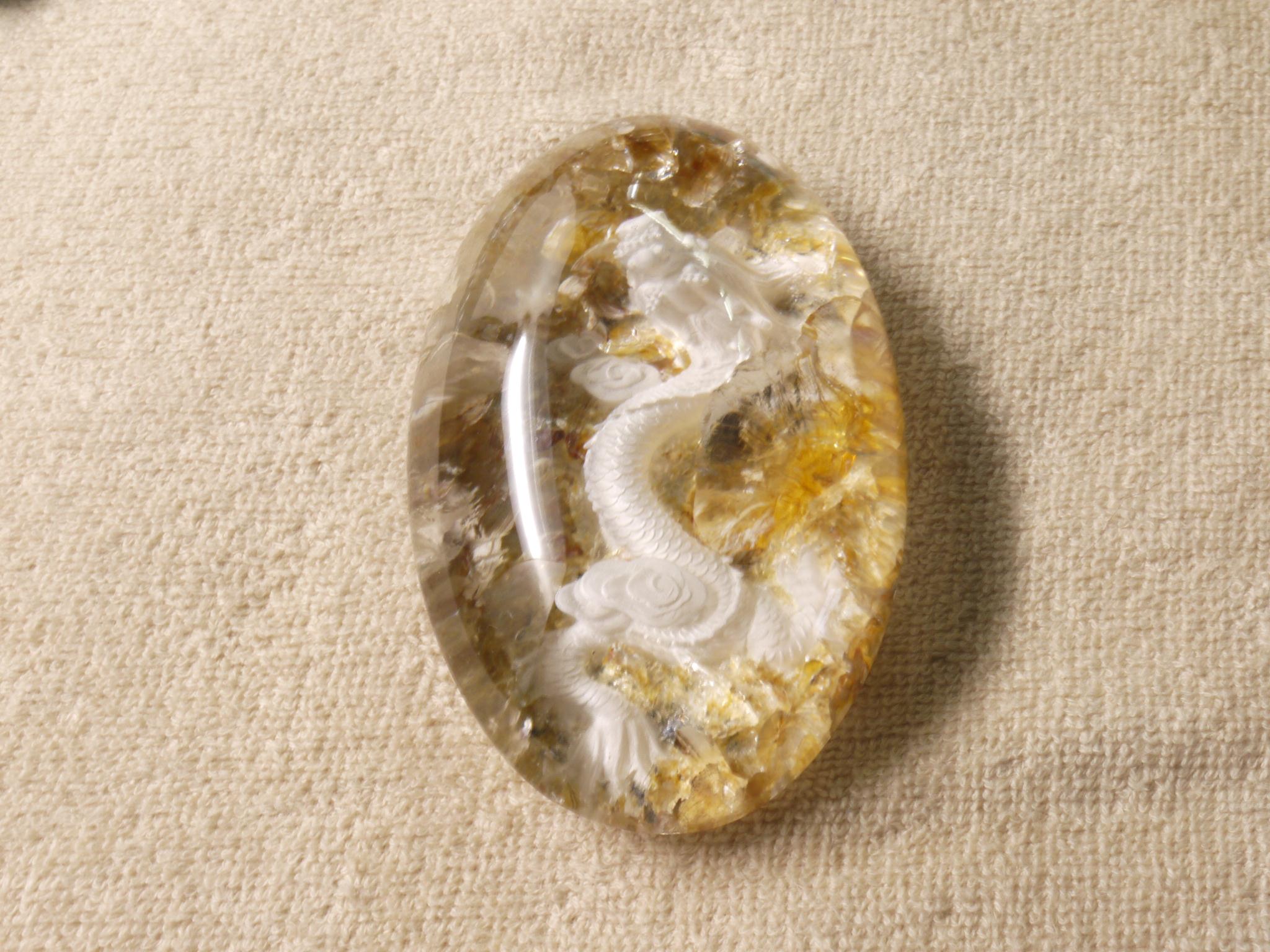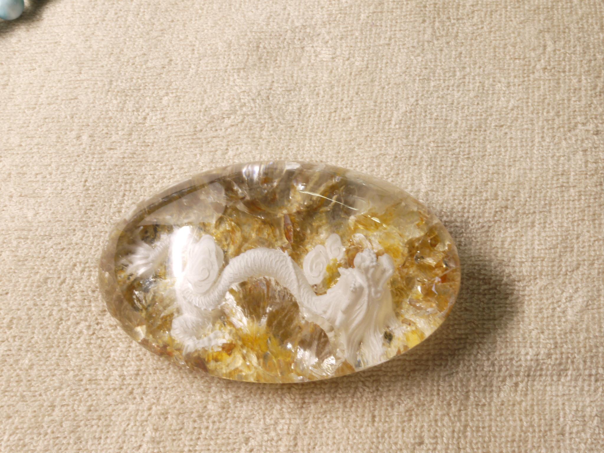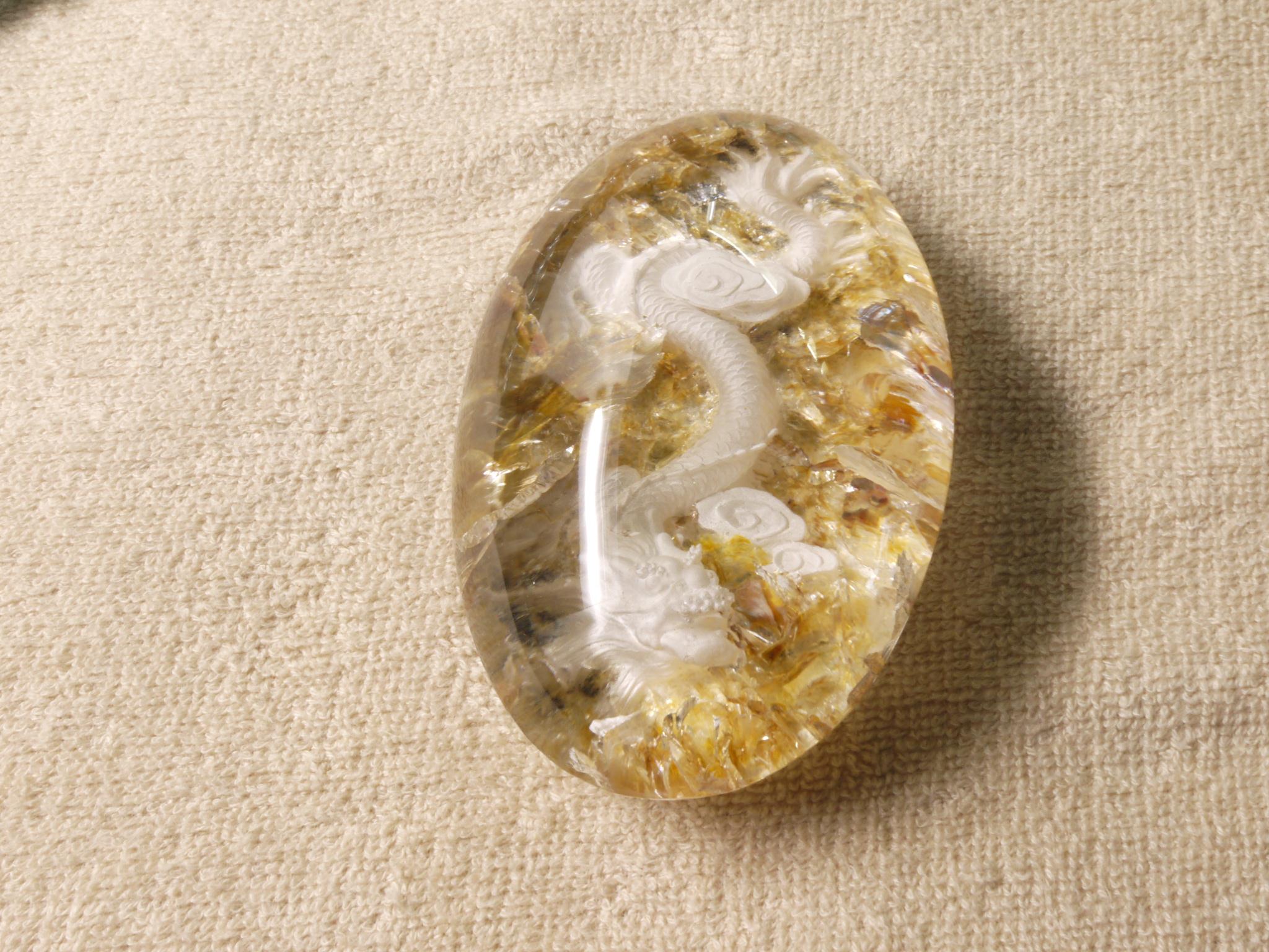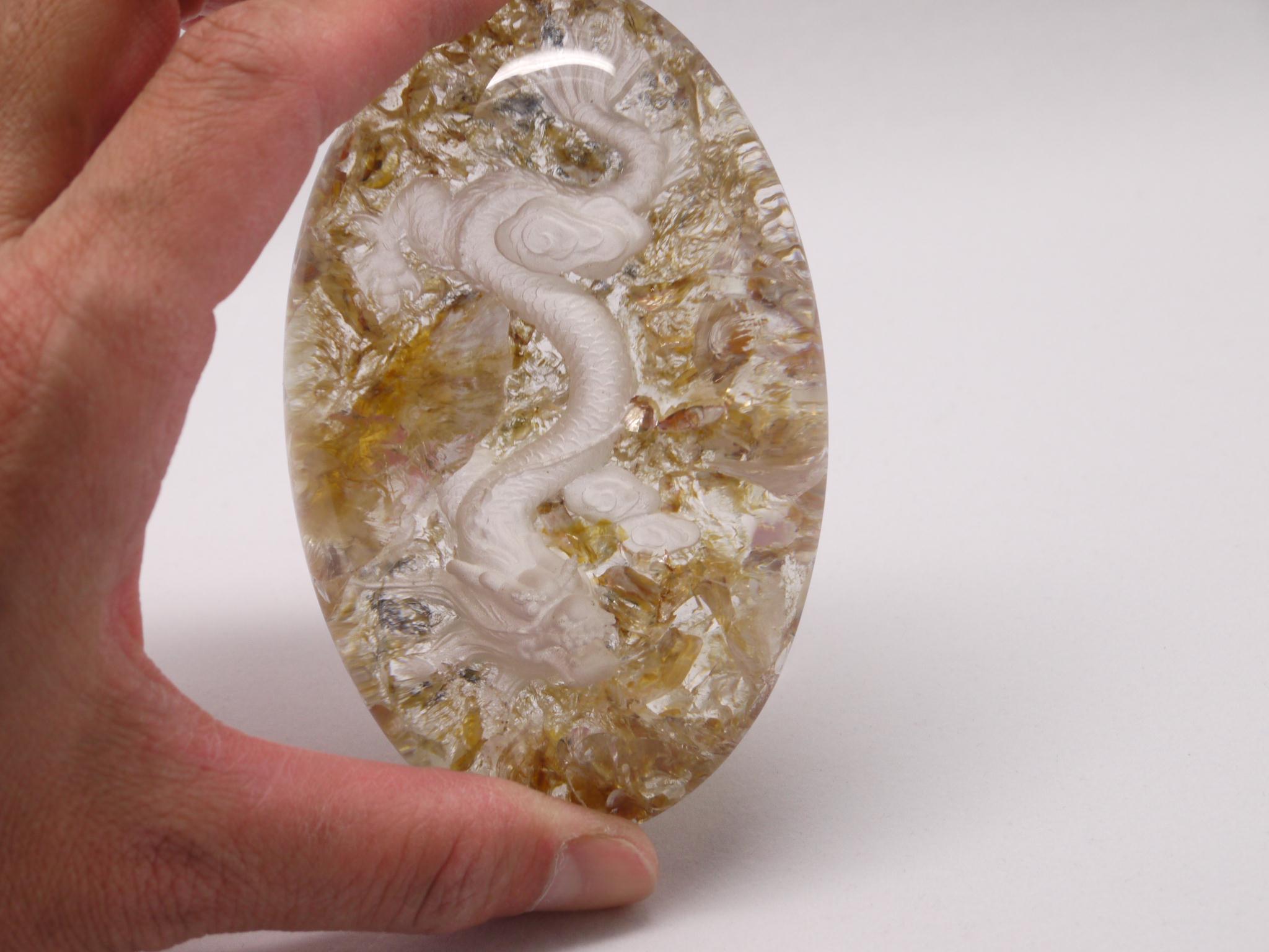 庭園水晶のデザインを生かして、丁寧に手彫りで作成された龍アイテムです。