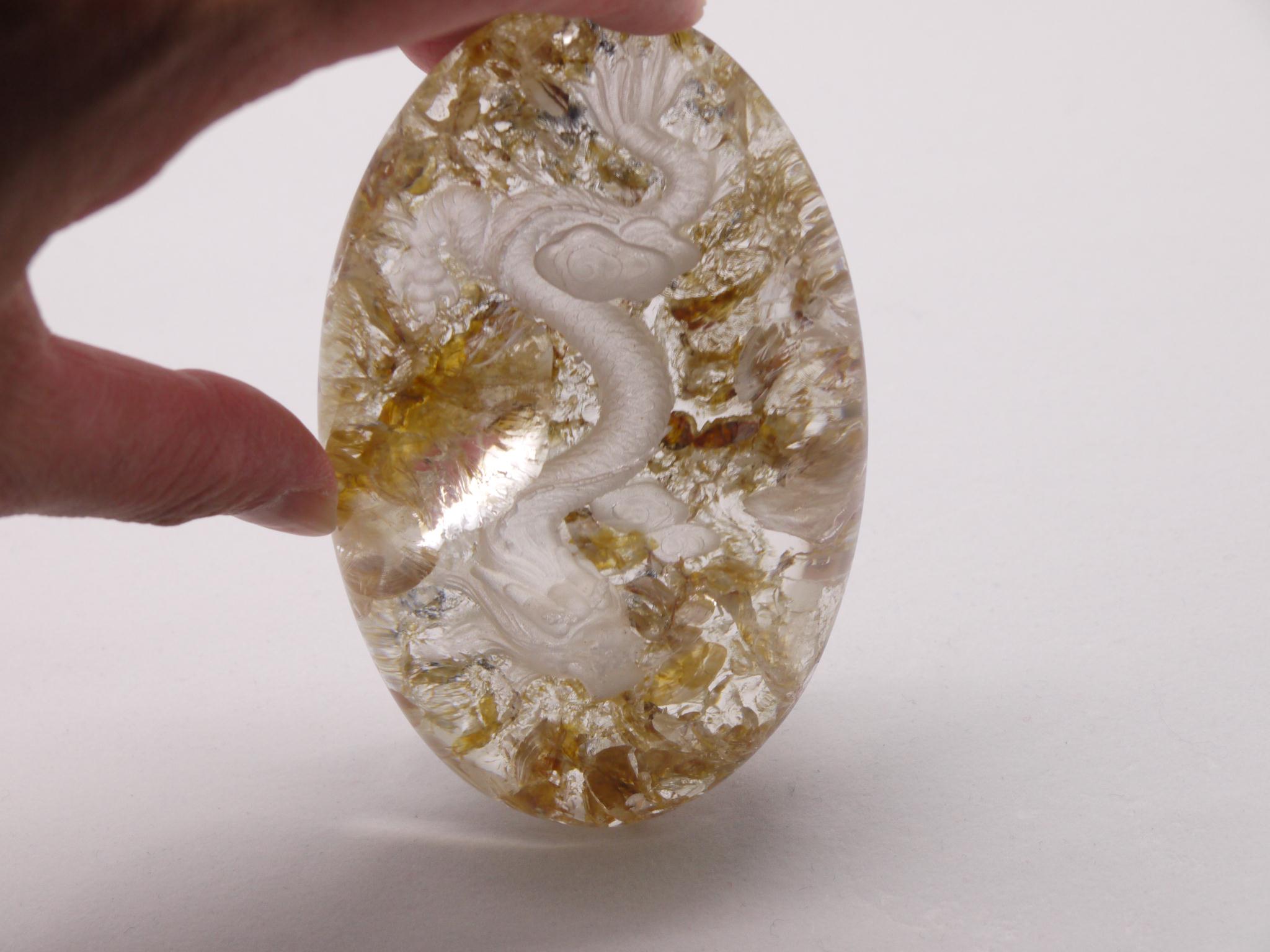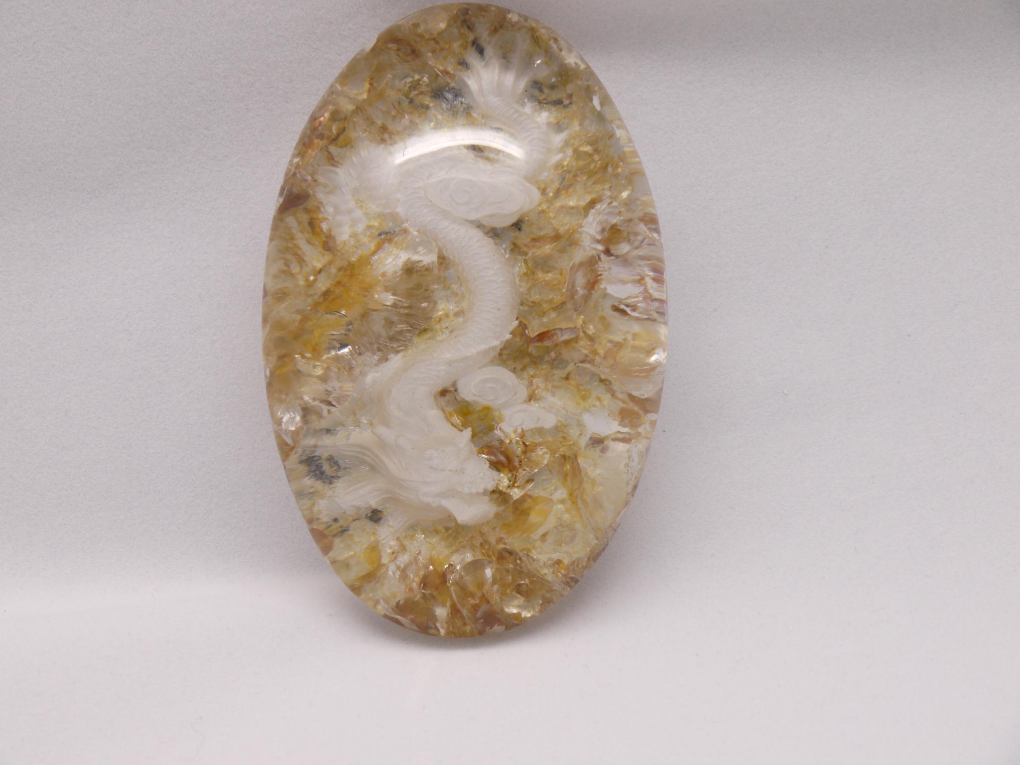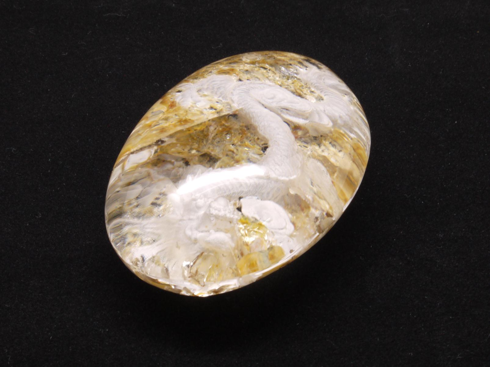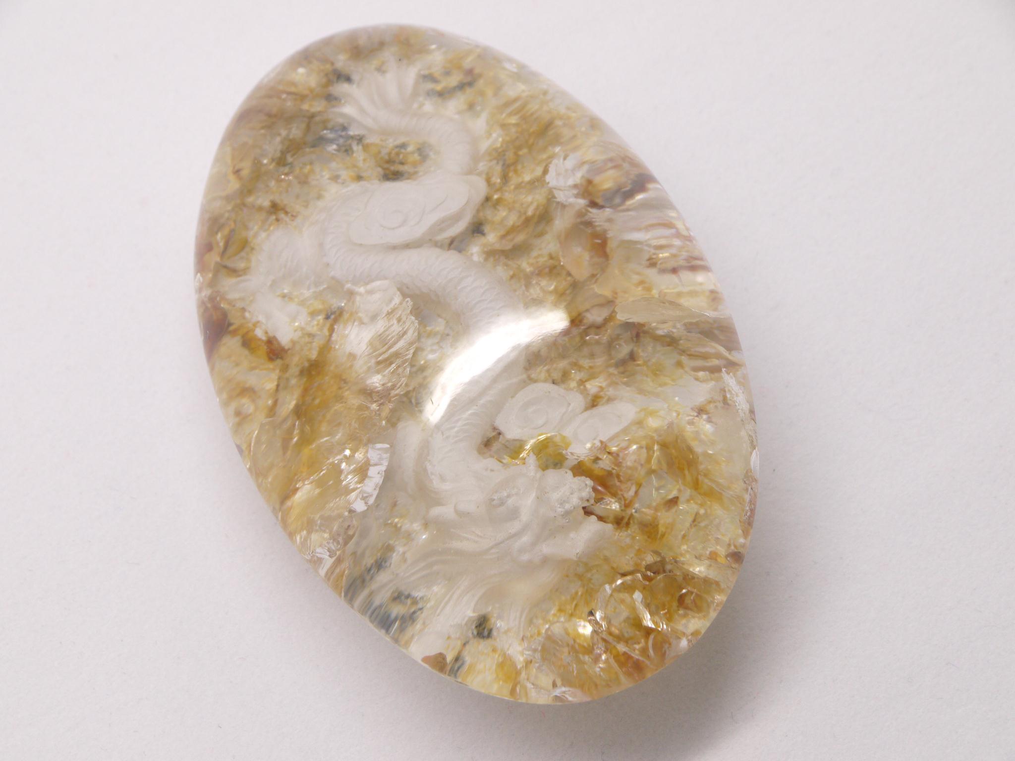 庭園水晶のデザインを生かして、丁寧に手彫りで作成された龍アイテムです。