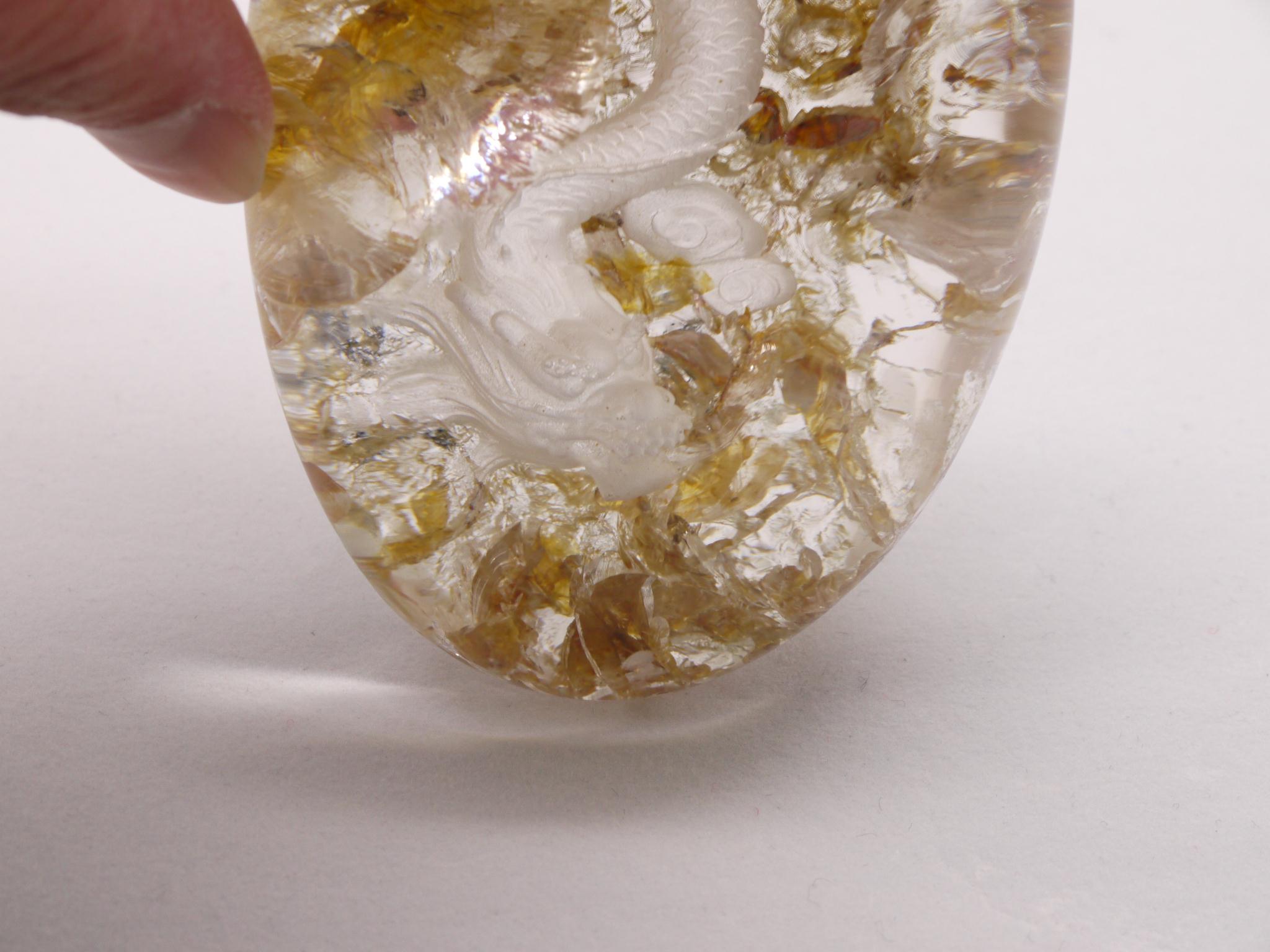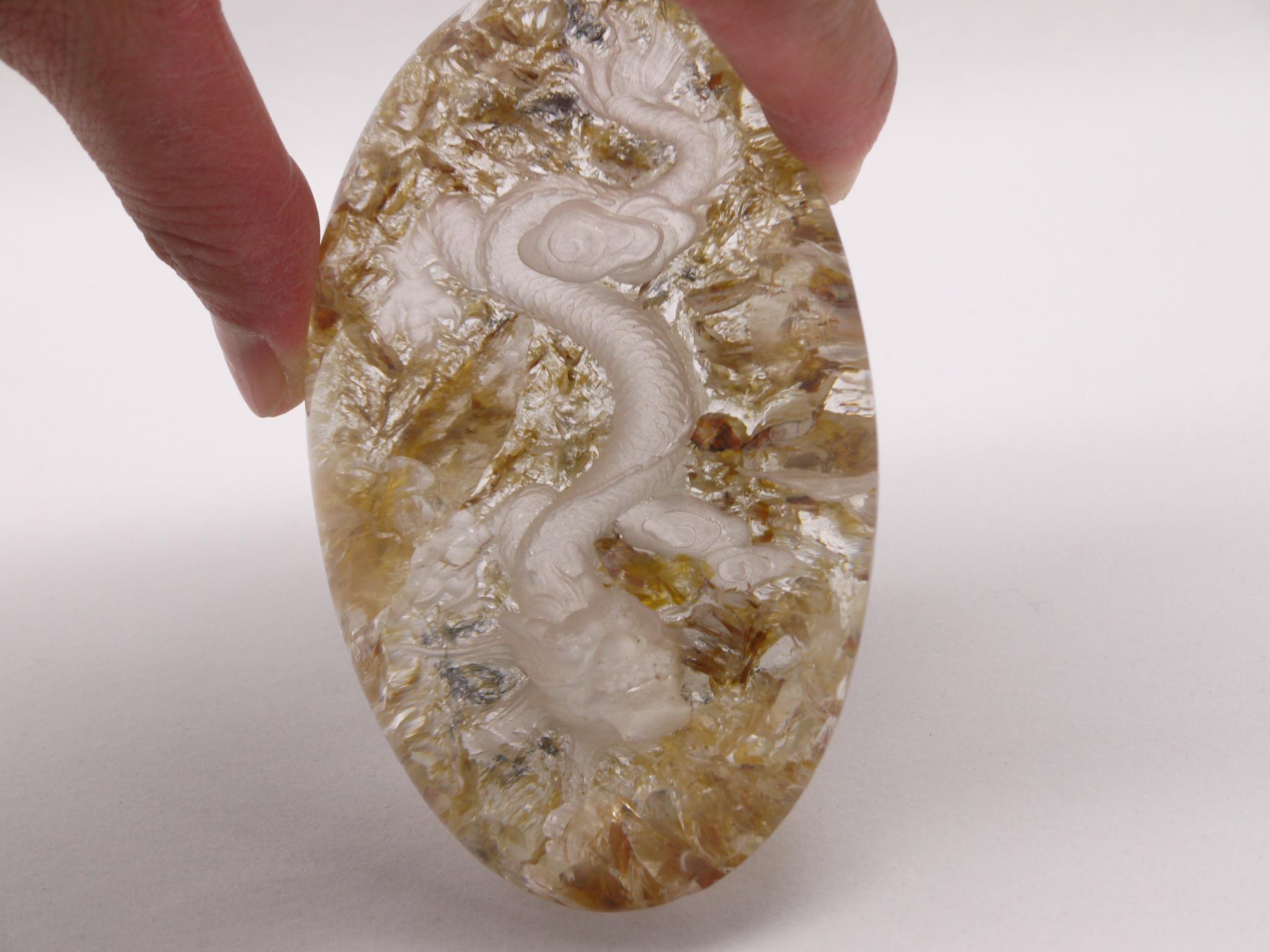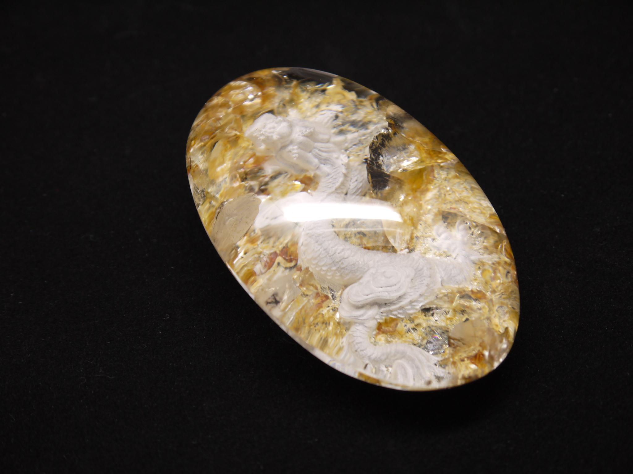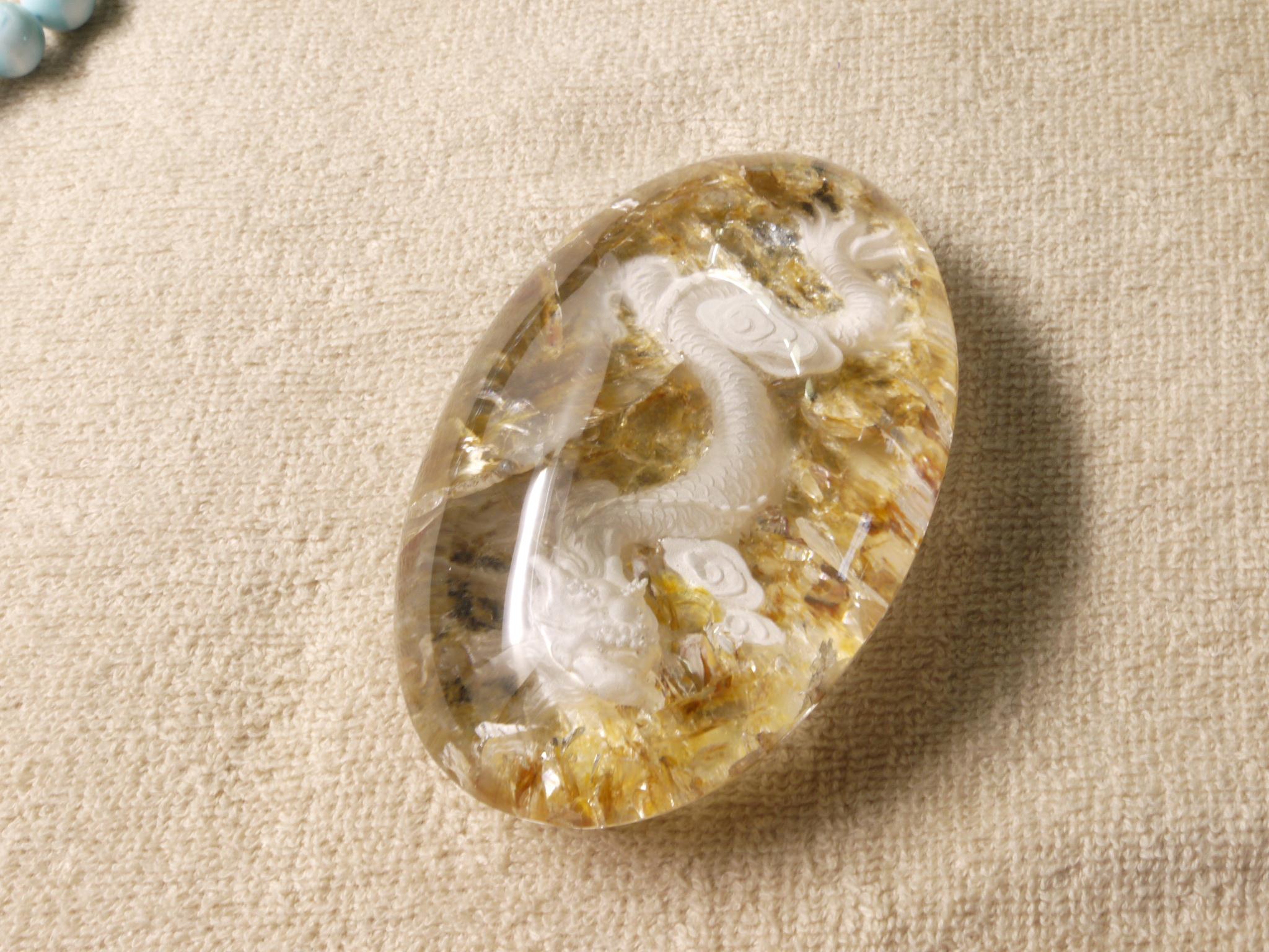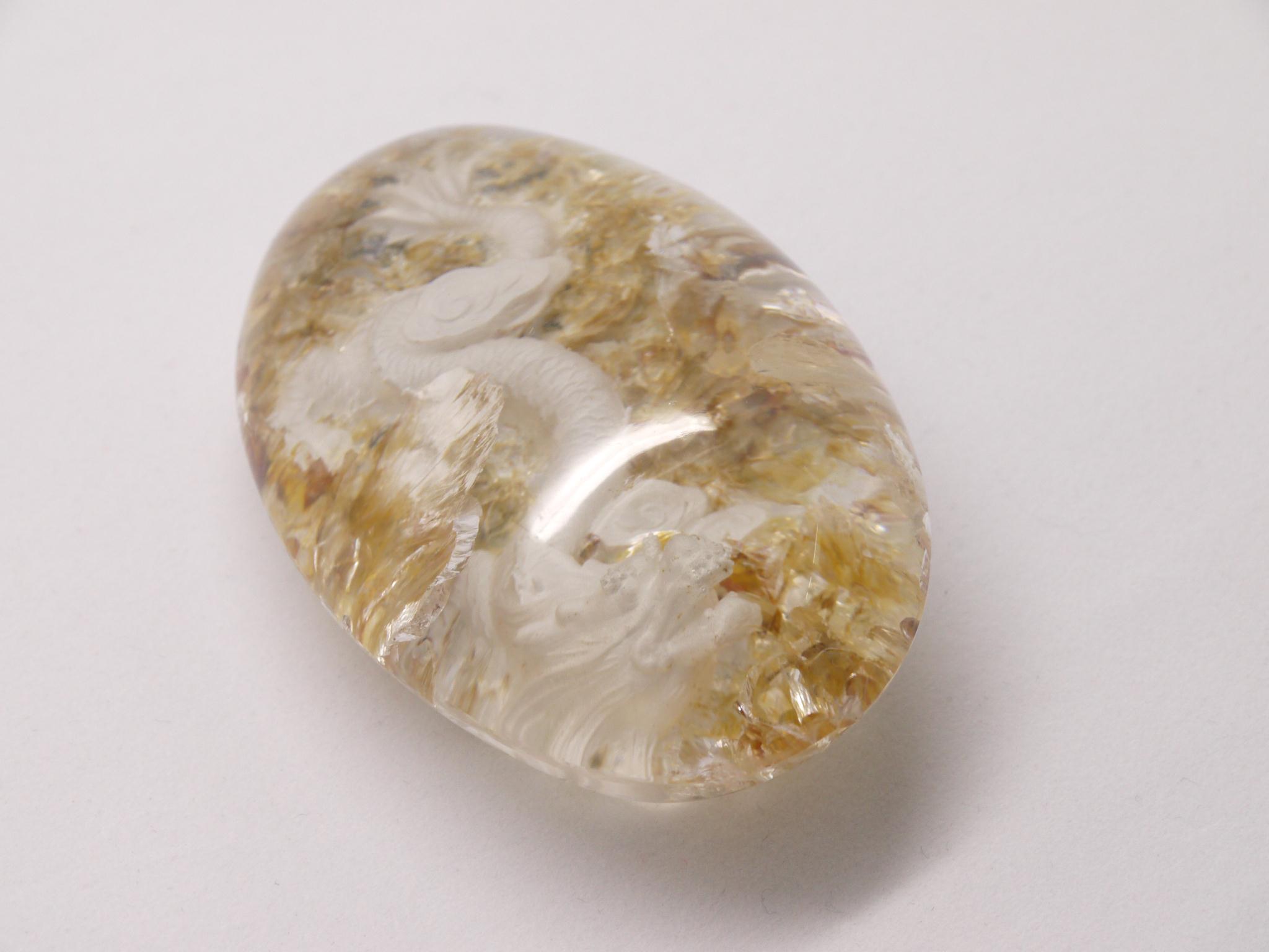 庭園水晶のデザインを生かして、丁寧に手彫りで作成された龍アイテムです。