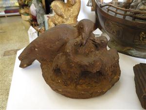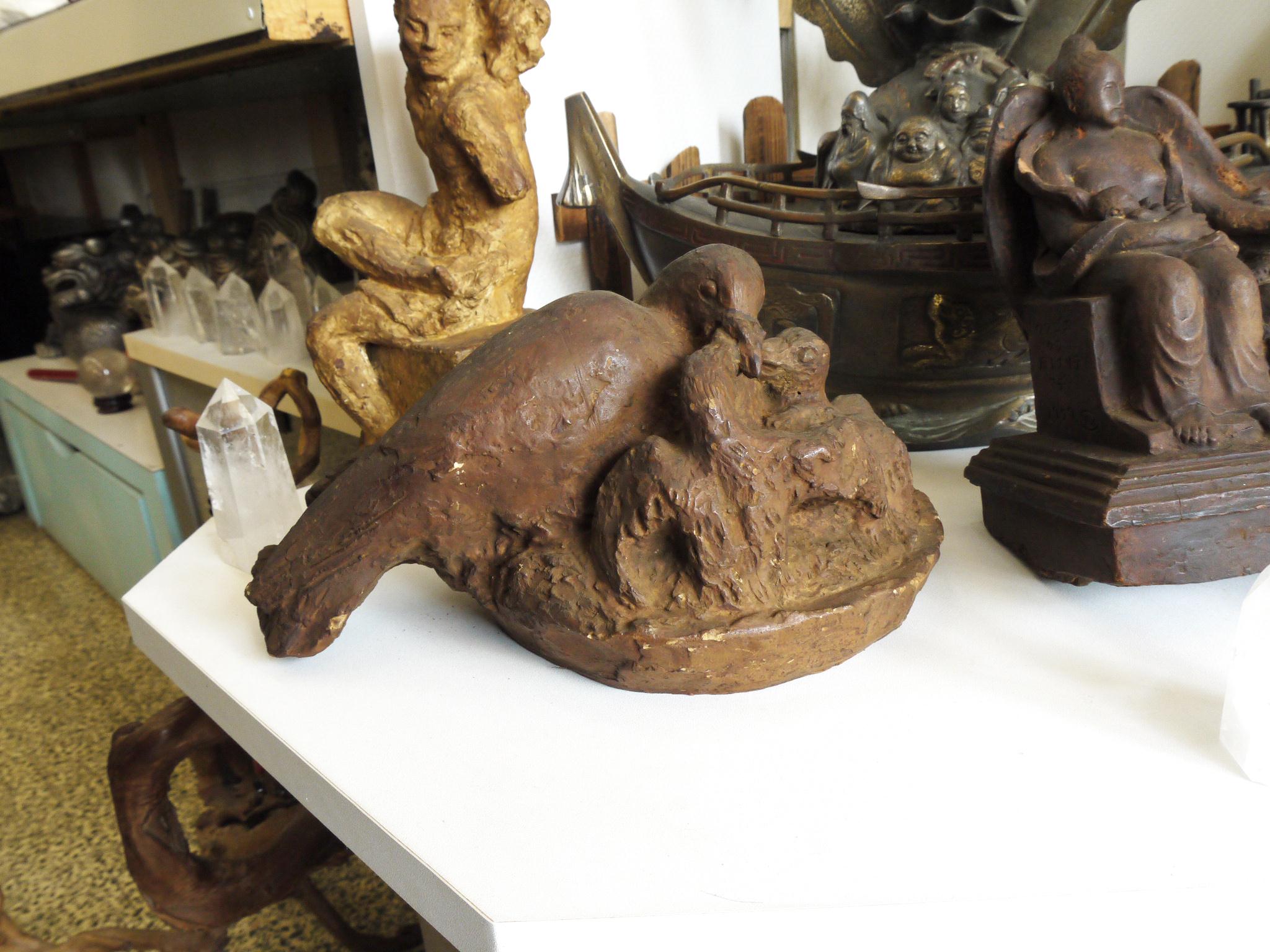 鳩の親子の像をモチーフとした置物です。心温まるデザインが特徴です。