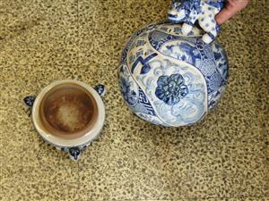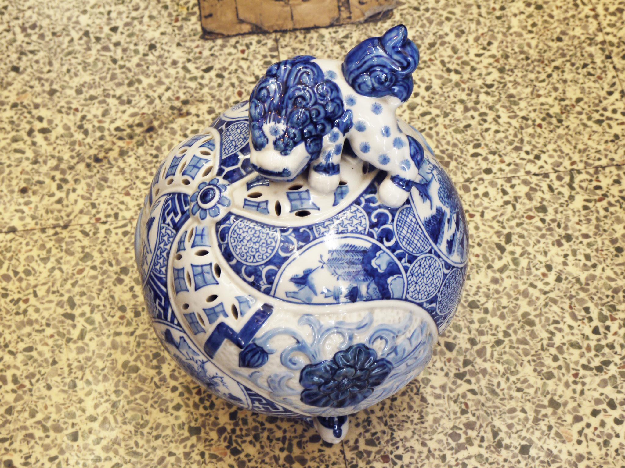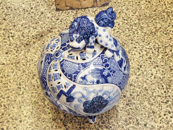 茶道具の一種の香合。大きな珠をイメージした丸い形に蓋の部分には 戯れるようなカワイイ獅子が乗った面白いデザインのです。