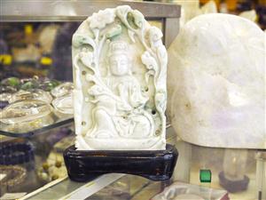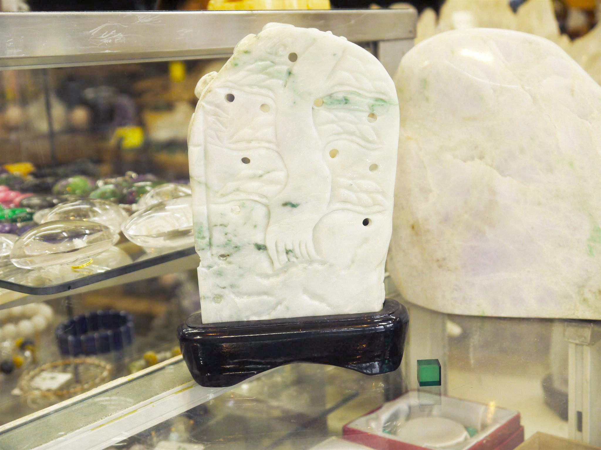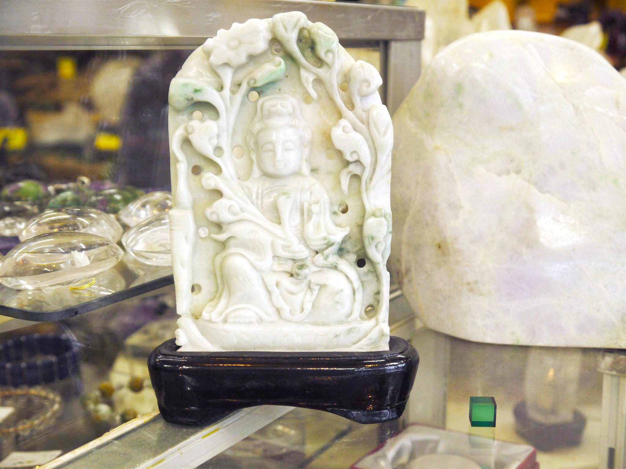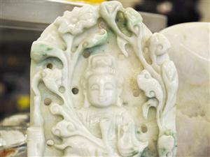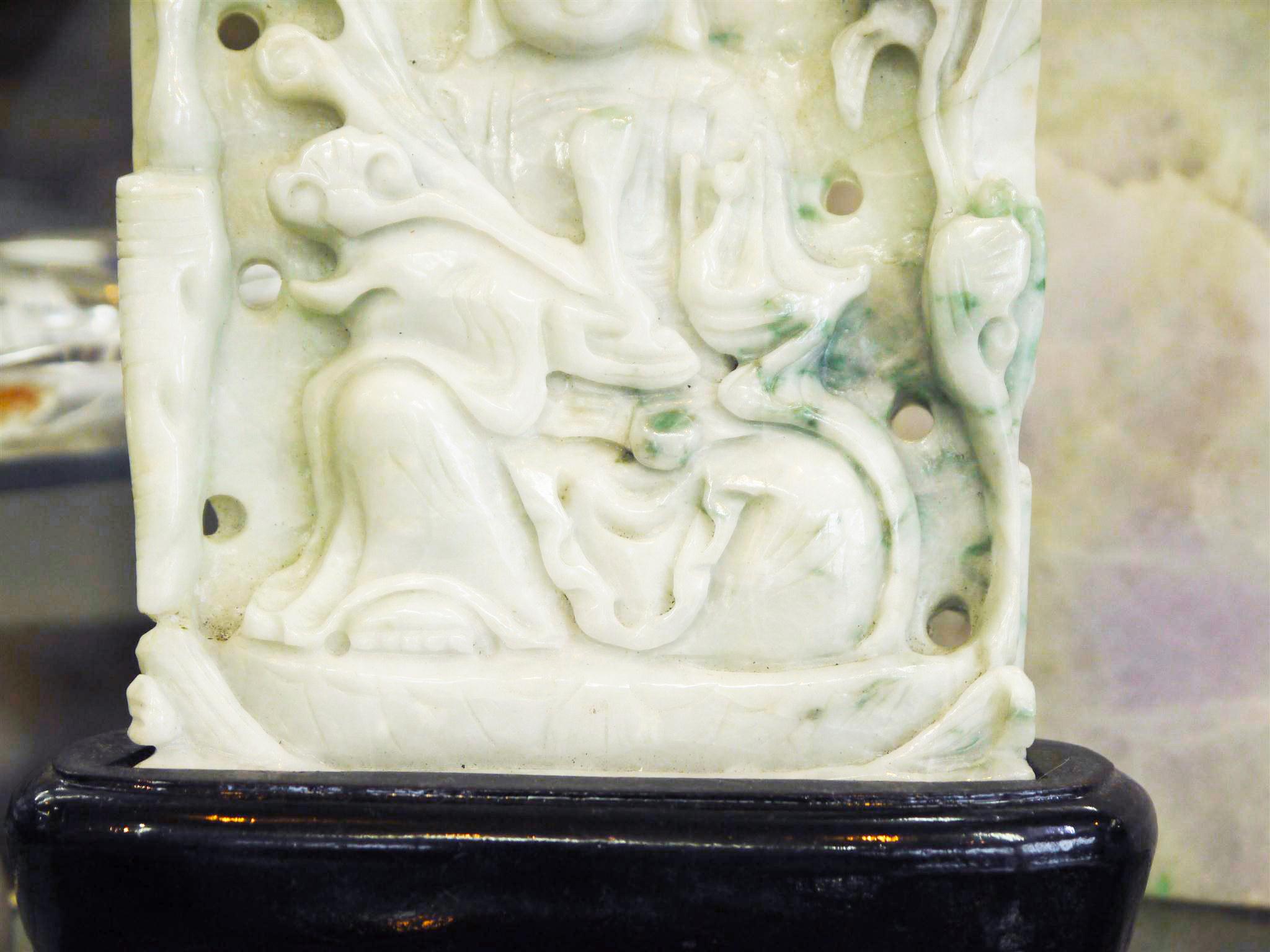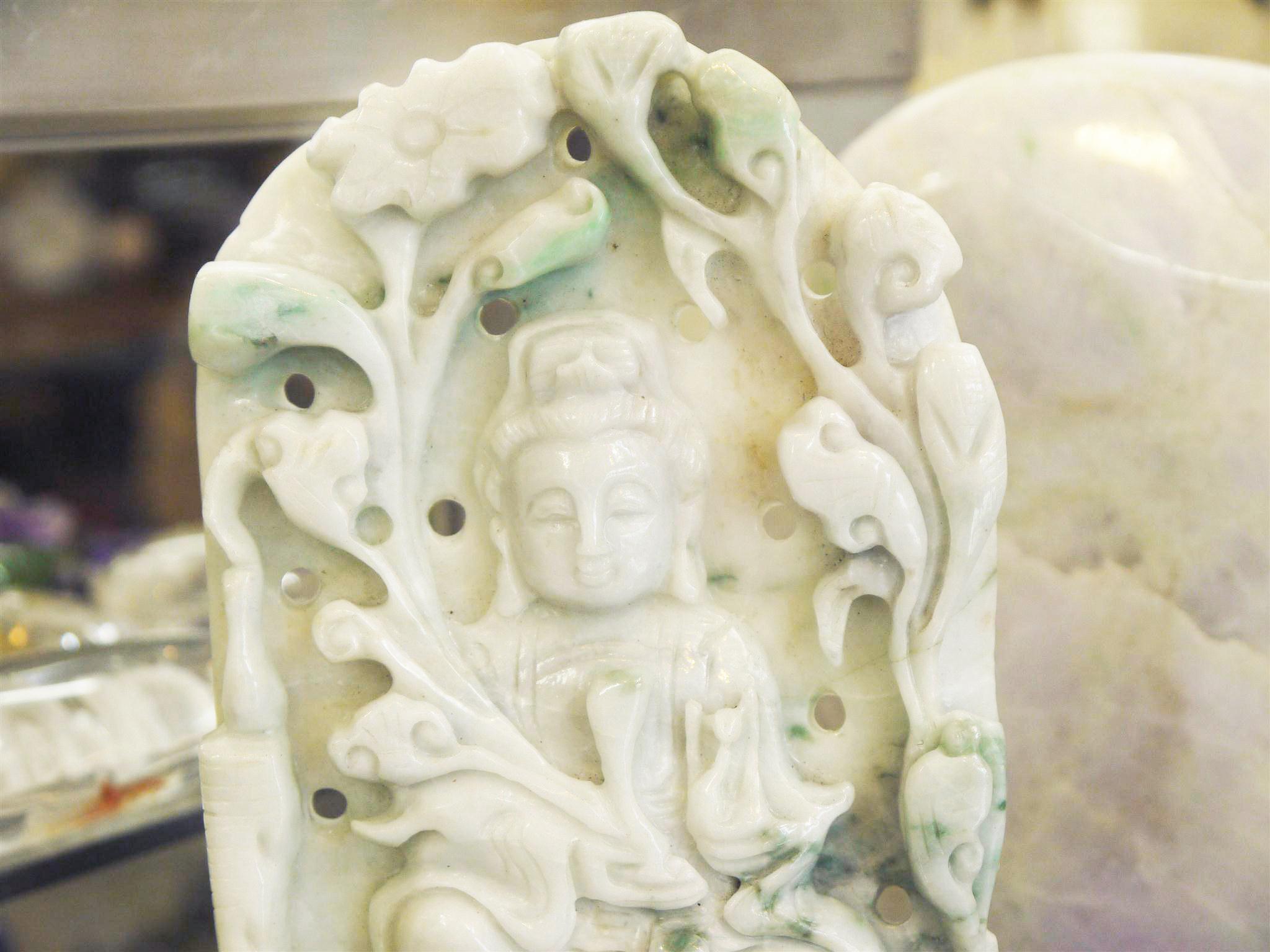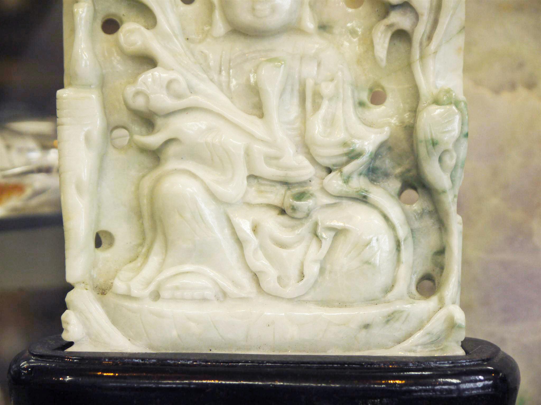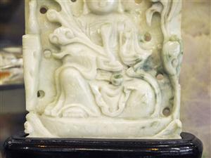にこやかな優しいお顔をしています。背面は健康、長寿を願う松の木が彫られています。