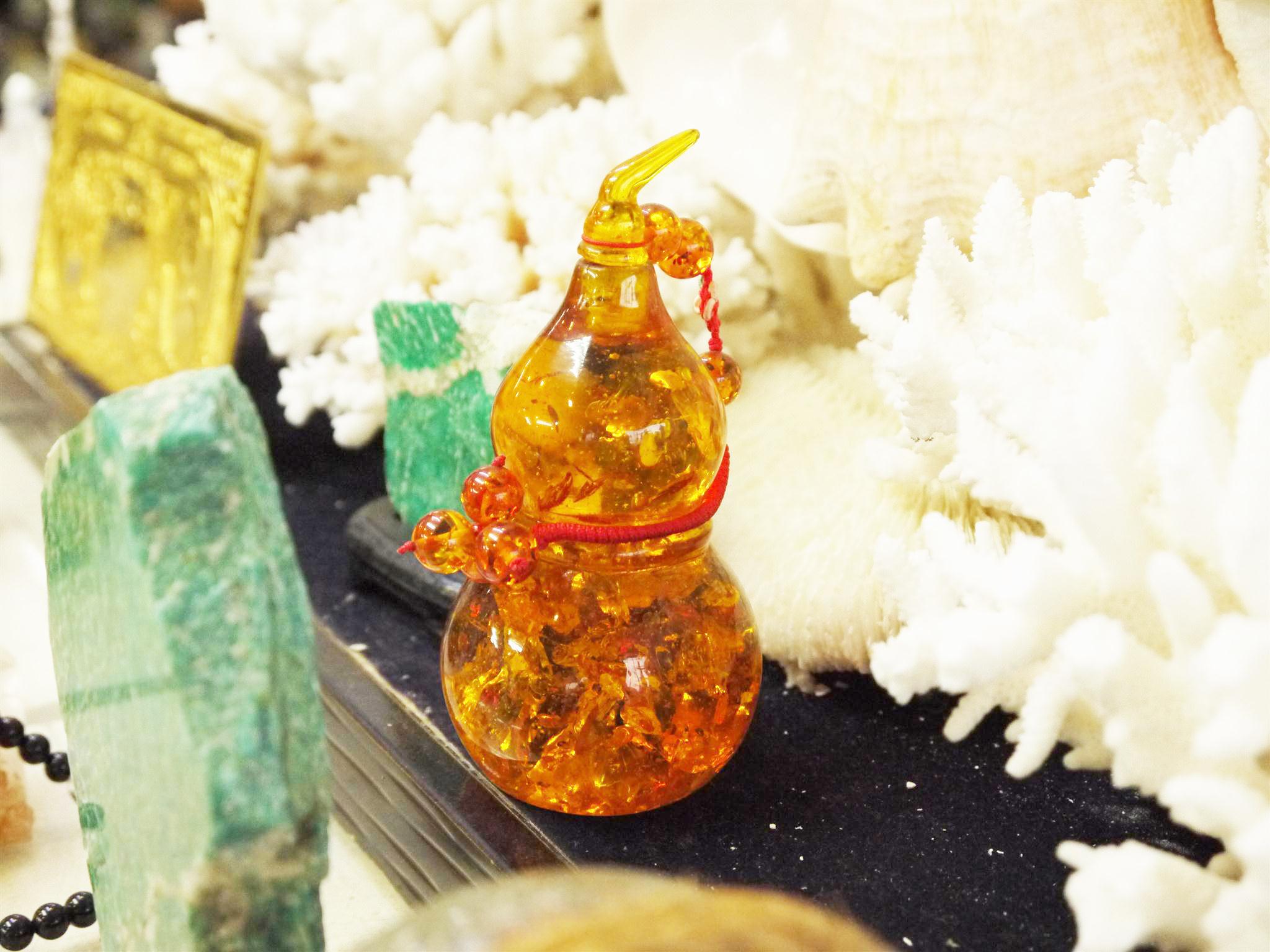 とても美しい琥珀で作られたひょうたんの置物です。 ひょうたんの意味は健康促進、家庭円満、悪い気を吸い込むとの意味がありますので、 風水アイテムとしてもおススメです。