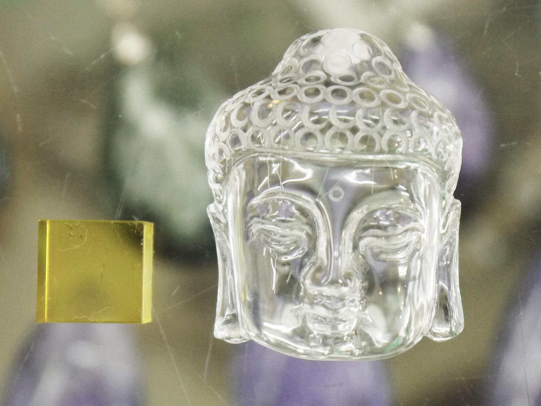 クリアタイプの水晶で仏様の顔を彫っています。 穴が空いているのでペンダントトップとして使用することができます。