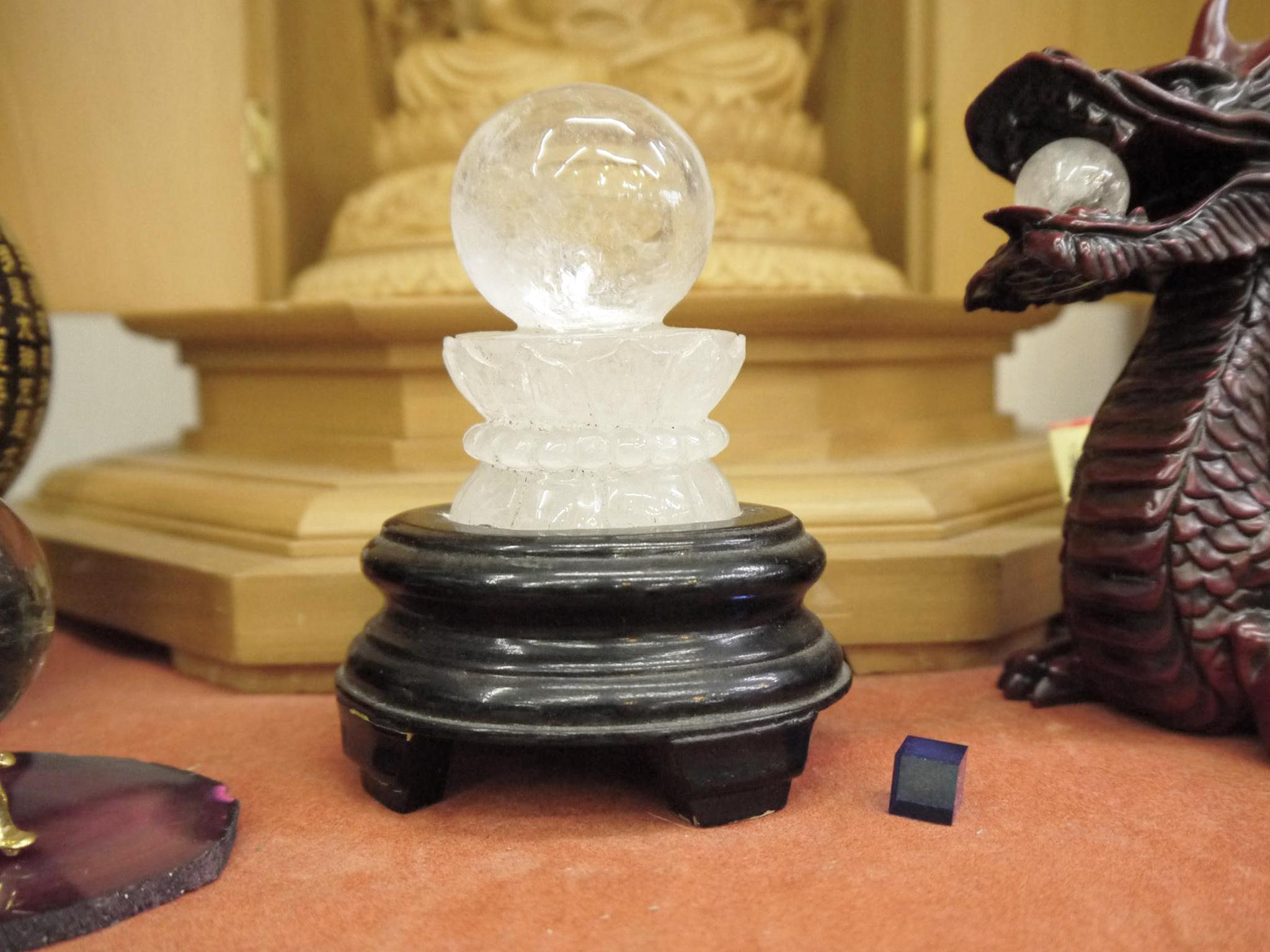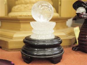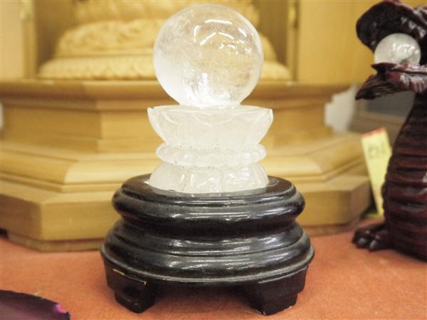 仏様が鎮座される蓮の花の上には水晶の球が乗っています。 (珠とハスは取り外すことはできません。)