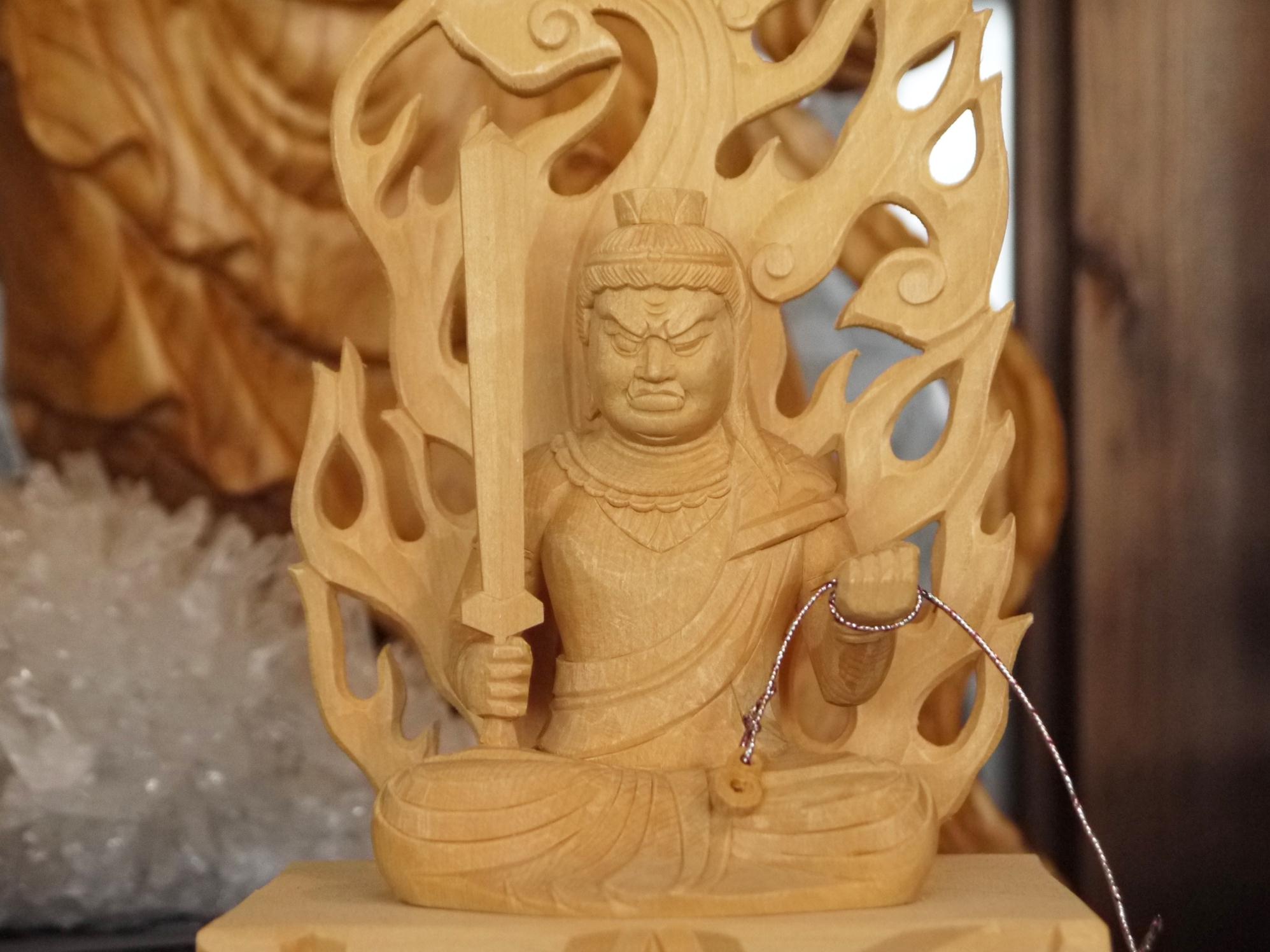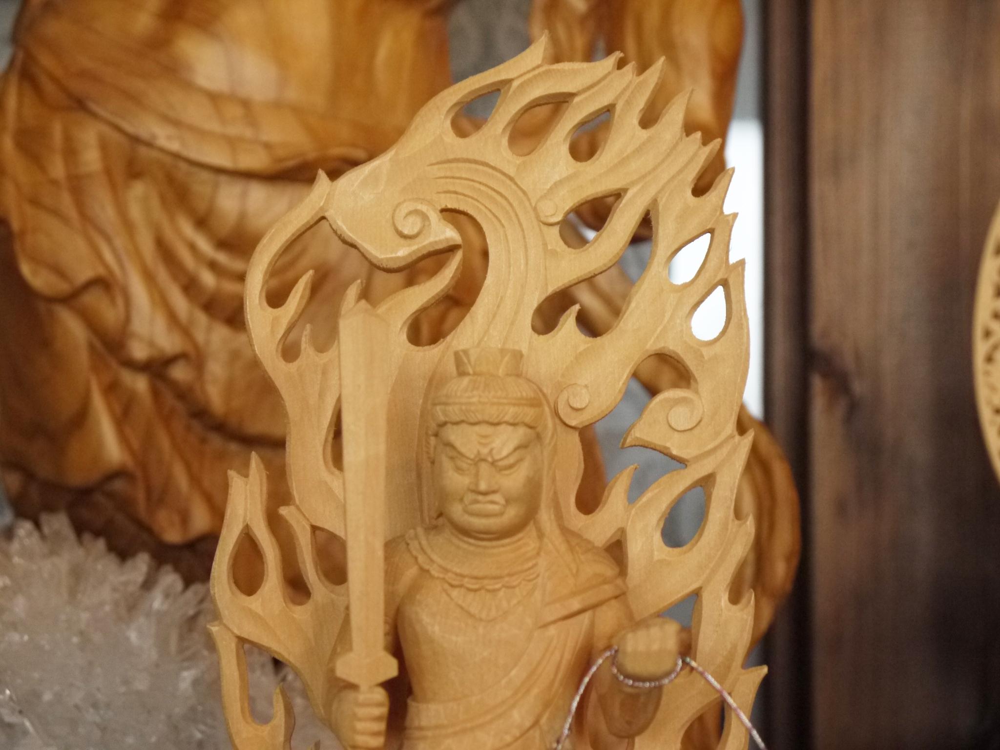 悪魔や煩悩を断ち切り、幸運と繁栄を招くといわれるお不動さま。 中国技術彫刻の名工によって入念精巧に彫られた美しい木像です。