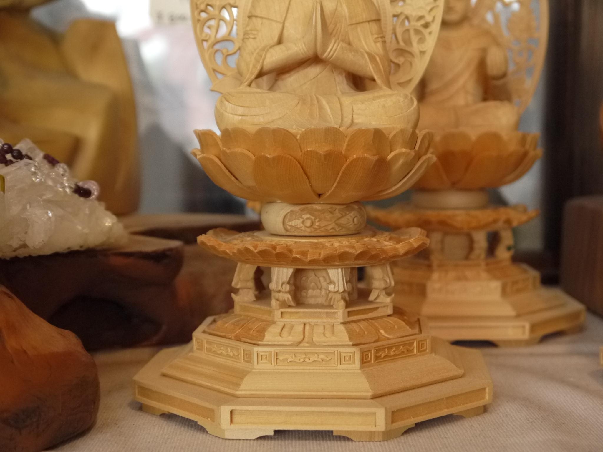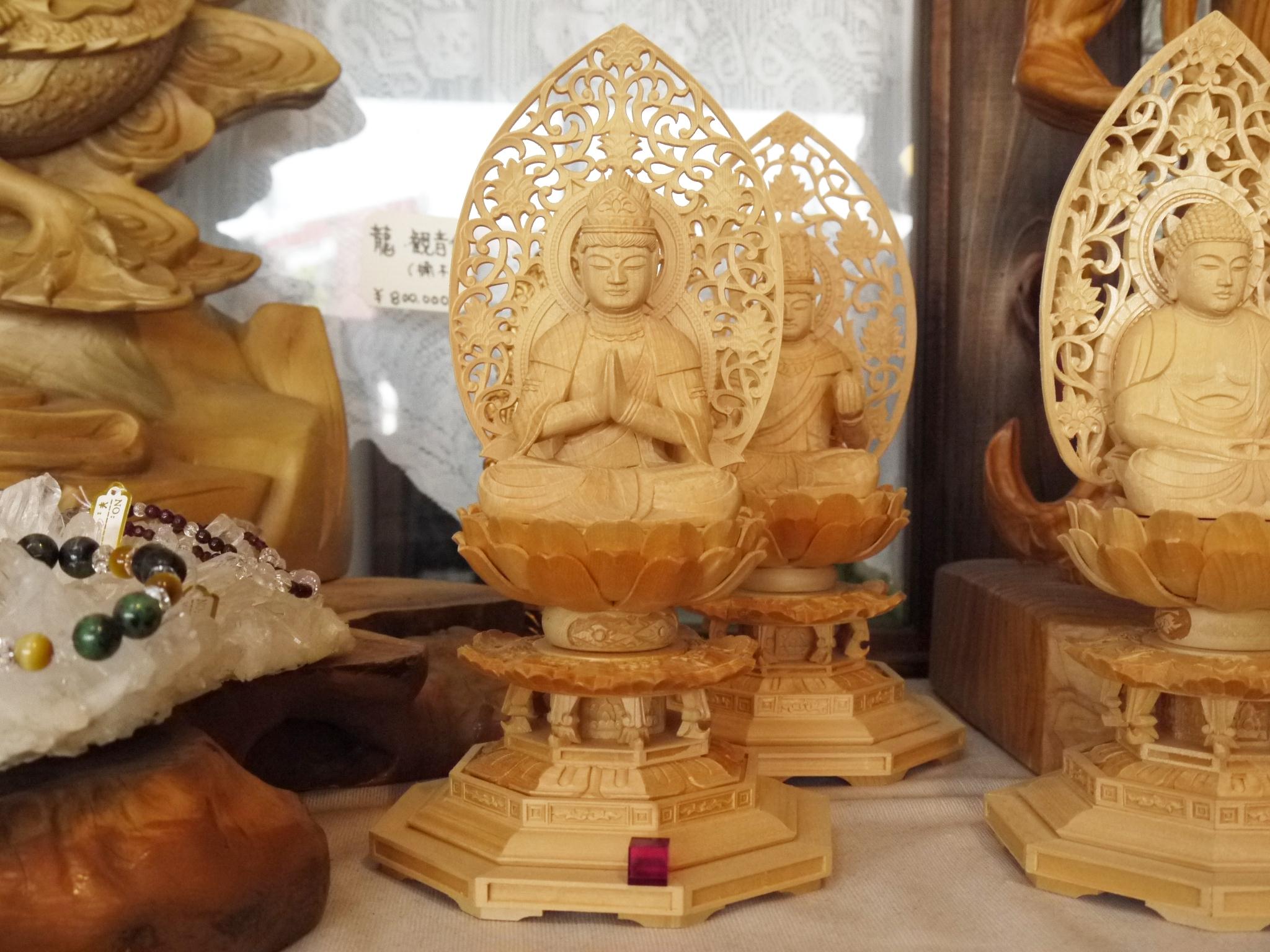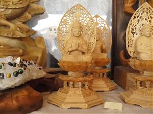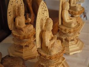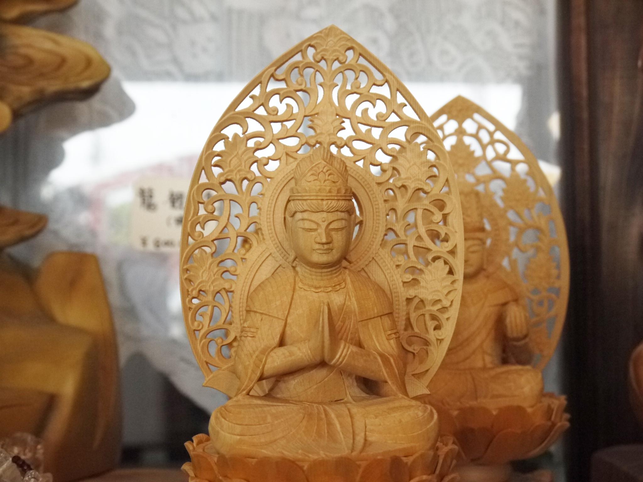 知恵を表す菩薩で、苦難と災難をさけ、平安を招くといわれる菩薩。 中国技術彫刻の名工によって入念精巧に彫られた美しい木像です。