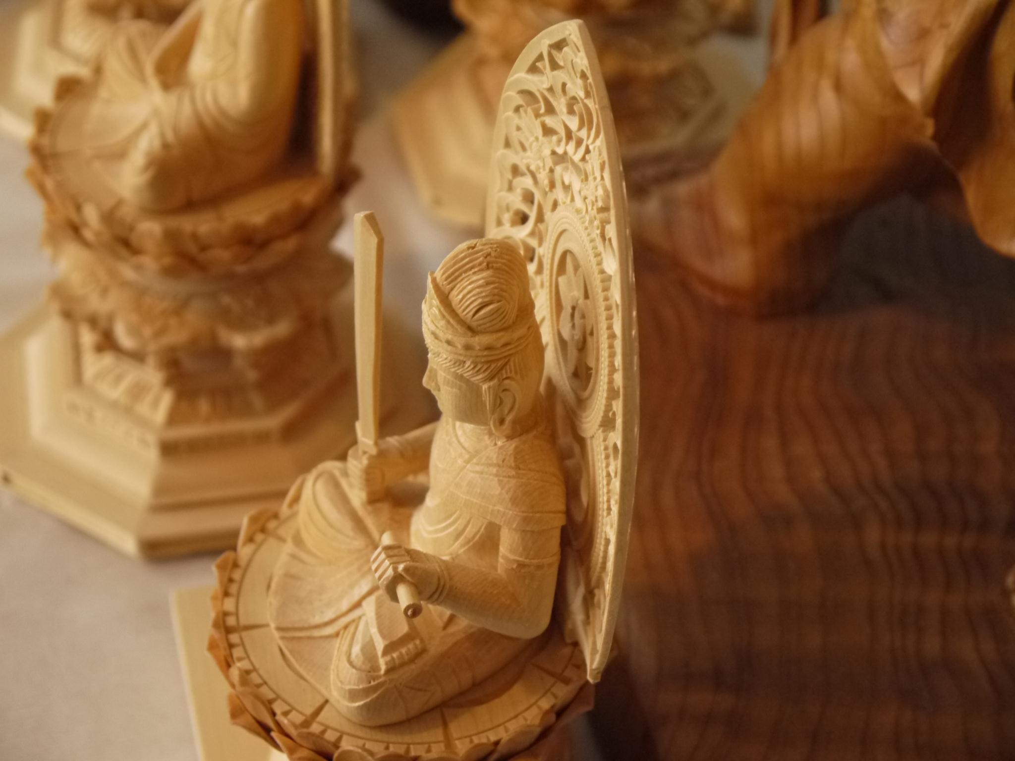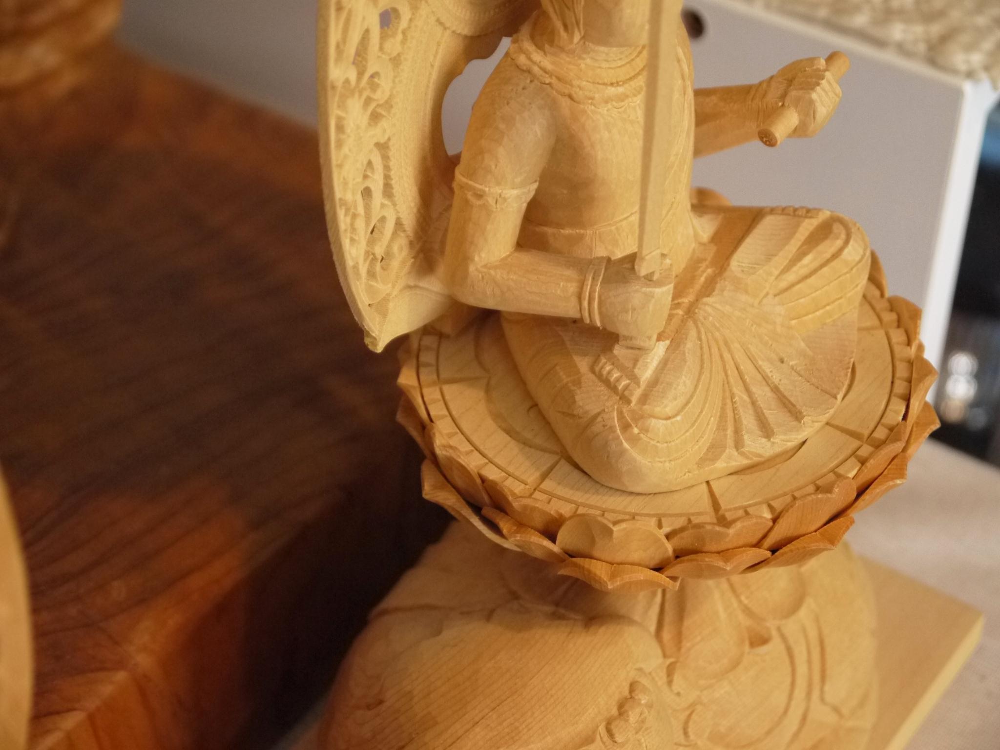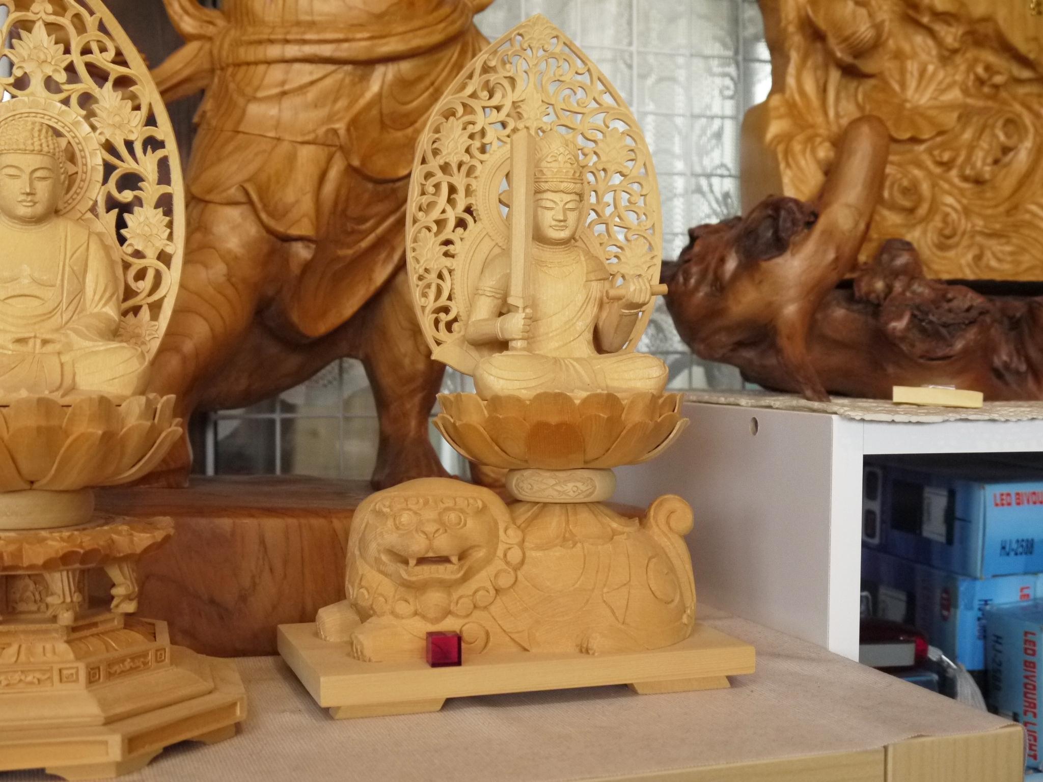 苦労や災難、疫病を断ち切り、無辺の英知を授けてくれると言われる菩薩 中国技術彫刻の名工によって入念精巧に彫られた美しい木像です。